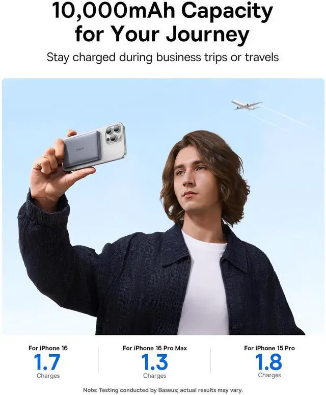 Baseus Picogo Power Bank, 0.5‘’ Ultra Slim 10,000mAh Magnetic Portable Charger