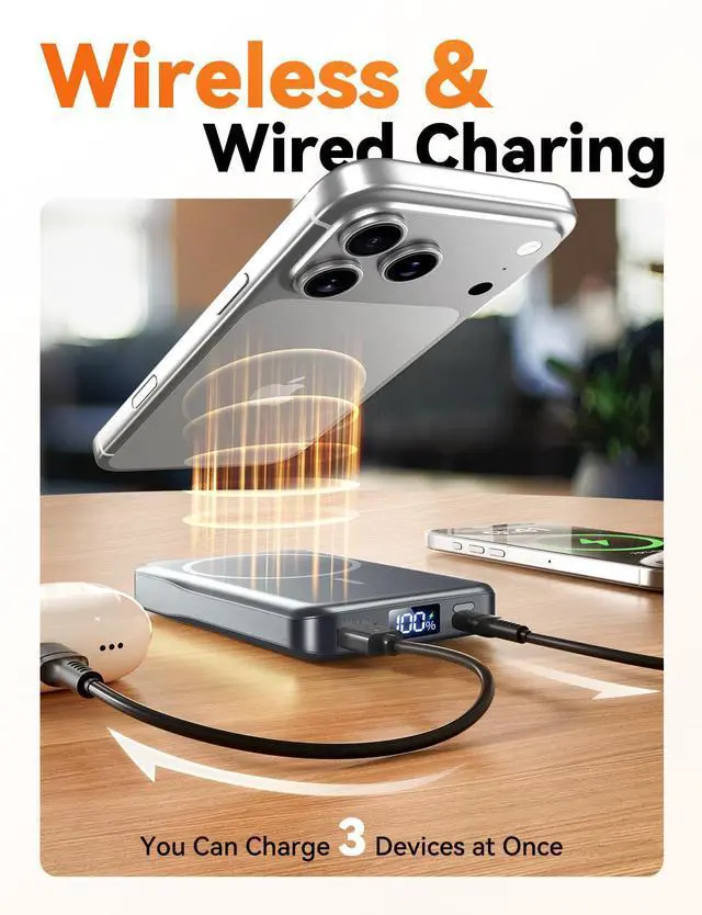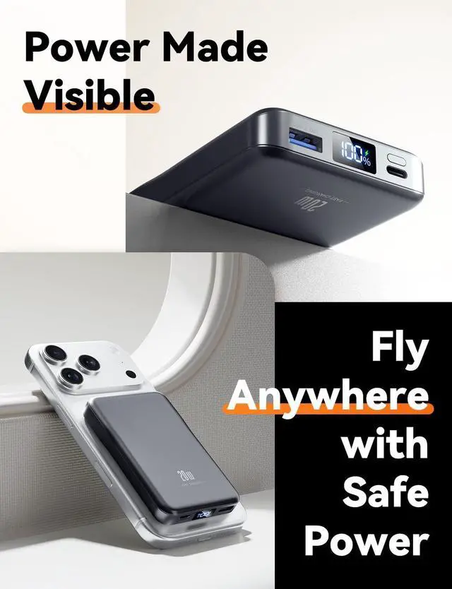 Dual Fast-Charging Ports 15W Wireless & 20W Wired Output for Versatile Use: This portable charger delivers flexible power with 15W wireless charging and fast 20W wired output through USB-A and USB-C. It efficiently powers smartphones, tablets, earbuds, and more. Whether charging multiple devices at once, it offers strong performance, shorter waiting times, and stable current management for daily use.