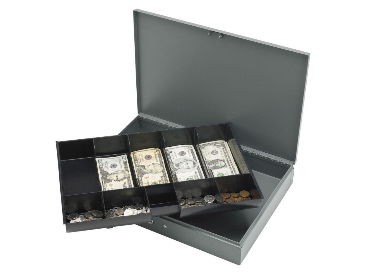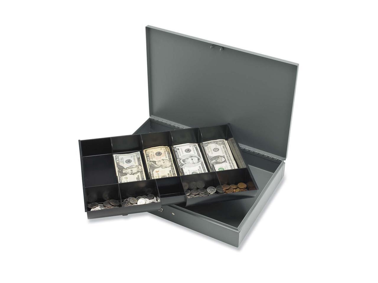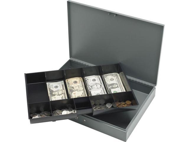 Sparco Products 15500 Cash Box,w/ 2 Keys,10 Compartments,15-2/5" x 10-1/2" x 2-1/4, GY SPR15500
