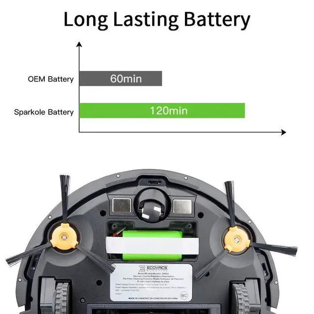 2600mAh lithium ion battery would power your robot vacuum for 120 minutes to 180 minutes(may vary with different settings and floor material).