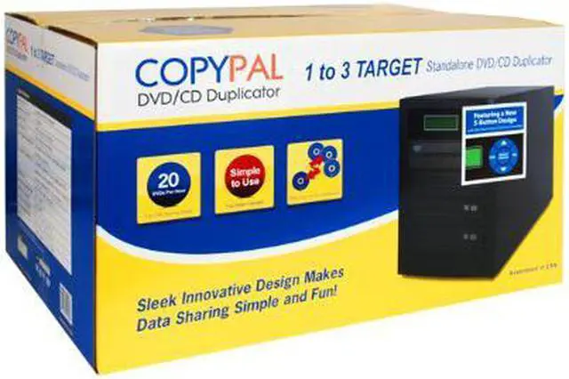 CopyPal DVD/CD Duplicator easily back up your digital files including photos, music, documents, data and more. This sleek, compact single target does it all at lighting speed up to 52x for Cd or 24x for DVD. No computer or software needed, no set up required, and no confusing buttons to push.