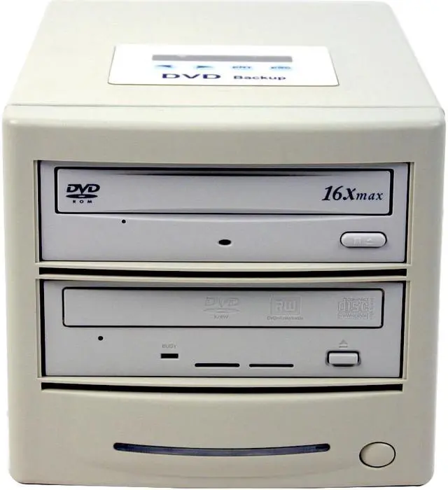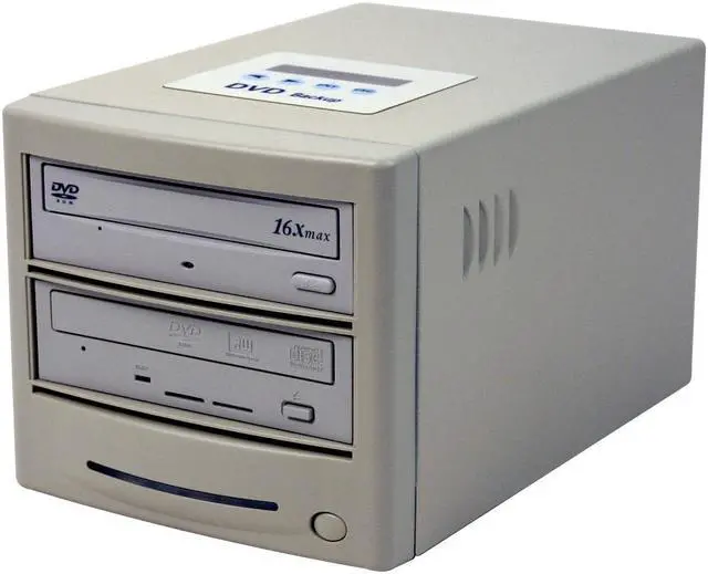 | Features | Target: 1 to 1 Display: LCD DVD Reader: Pioneer 16x DVD-ROM DVD Recorder: Pioneer A08/108 DVD±R/RW recorder Fully standalone DVD/CD duplication Power boot self diagnostics Automatic CD and DVD formats recognition Upgradeable to future drive technology |