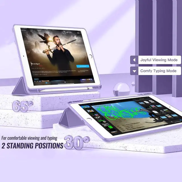 iPad 9th Generation Case 2021/iPad 8th Generation Case 2020 10.2 Inch with Pencil Holder, iPad 7th Gen 2019 Case with Clear Transparent Back, Auto Wake/Sleep Cover(Clove Purple)