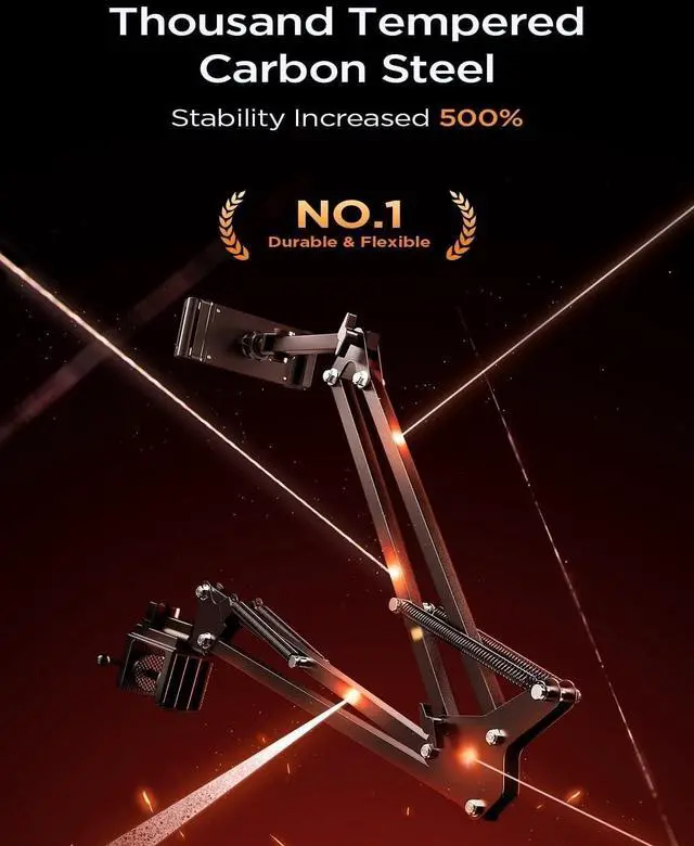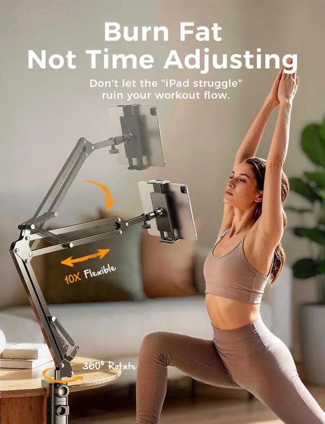 This tablet stand features a professional spring and knobs, making it more flexible, more resistant to vibration, and preventing drooping compared to traditional gooseneck-style cell phone stand