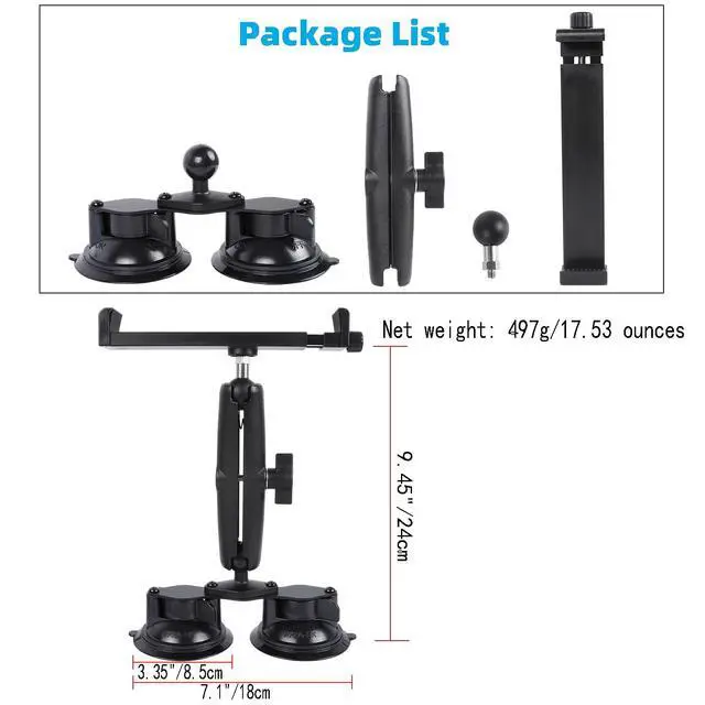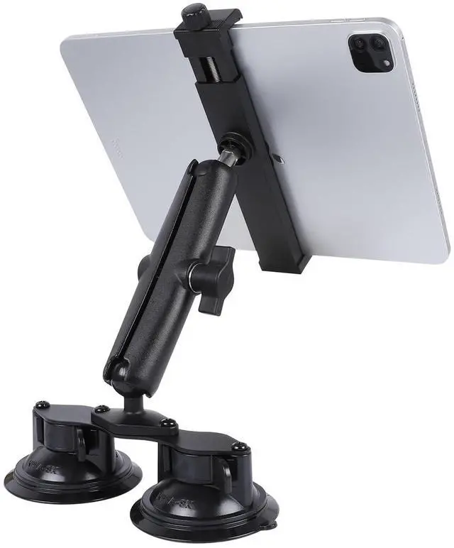 FPN iPad Pro 12.9 Inch Tablet Mount with Dual Suction Cup Base for Car Windshield, Aluminum Arm Heavy Duty, Tablet Suction Holder for Window, Compatible with 6.5-12.9" Tablets