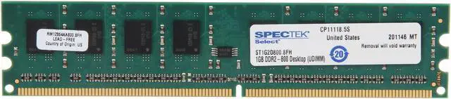 DDR2 800 MemoryThe SPECTEK ST1G2D800 memory module is rated at 800MHz with Cas Latency 6 timing to deliver up to 6.4GB bandwidth per channel to deal with the evolving needs of today's operating system and applications.