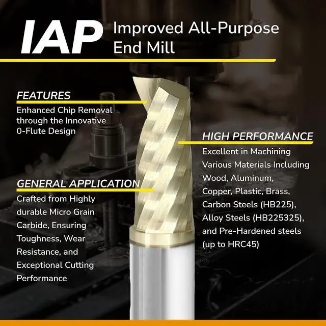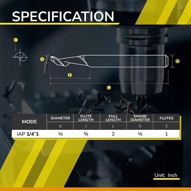 Brand Name SPEED TIGER Material Carbide Measurement System Imperial Number Of Flutes 1 Number of Items 1 Part Number IAP1-4-1T-ZrN Specification Met Iso UNSPSC Code 27110000