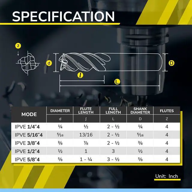 Ean 4712805504398 End Cut Type Square End Measurement System Imperial Part Number IPVE3-8-4 Shank Diameter 0.375 inches inches Size 3/8 in