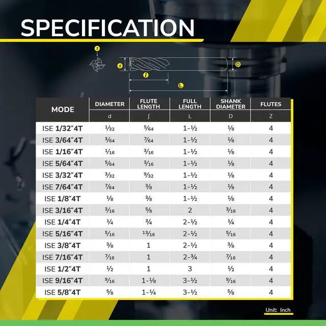 Ean 4712805504657 End Cut Type Square End Material Carbide Measurement System Imperial Model Number ISE1-16-4T Number Of Flutes 4 Part Number ISE1-16-4T Shank Diameter 0.125 inches inches