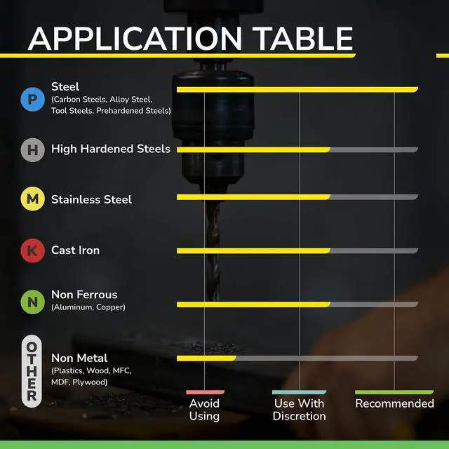 | Application | "for Metalworking General" | "for Metalworking Stainless Steel" | "for Metalworking Titanium, Iconel Alloy" | for Aluminum | for Carving | for Chamfer |