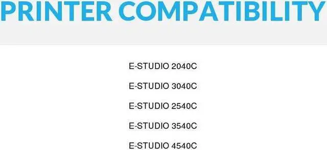 ["For use in Toshiba: e-Studio 2040C, e-Studio 2540C, e-Studio 3040C, e-Studio 3540C, & e-Studio 4540C","Color: Black","Shelf Life: 24-36 Months","The use of aftermarket replacement cartridges and supplies does not void your printer's warranty",""]