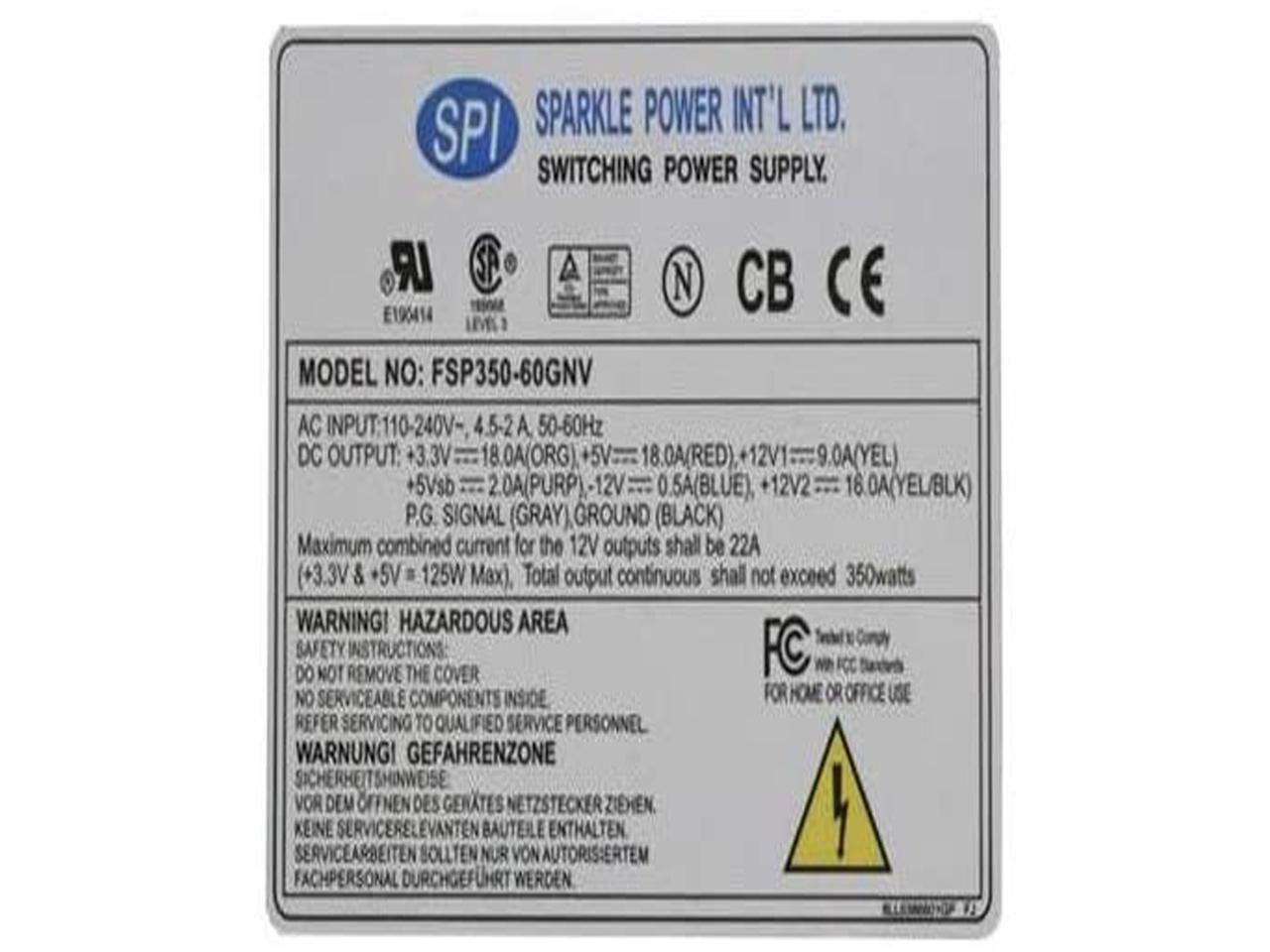 SPI FSP350-60GNV 350W Active PFC Power Supply, 6cm Ball-Bearing Fan