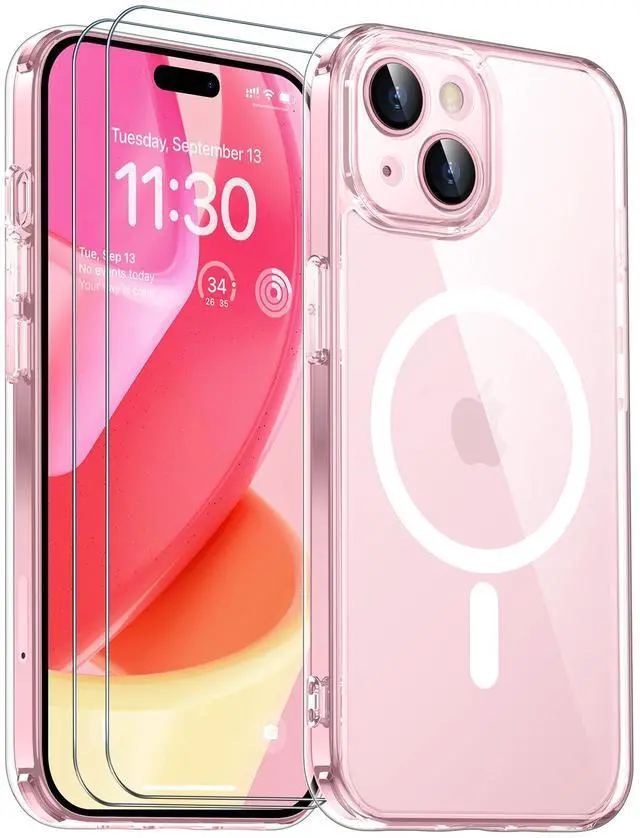 Designed for iPhone 15 Case, Magnetic with [2 Tempered Glass Screen Protectors] [10 FT Military Grade Drop Protection] Anti-Yellowing Anti-Scratch Slim Phone Case, Clear