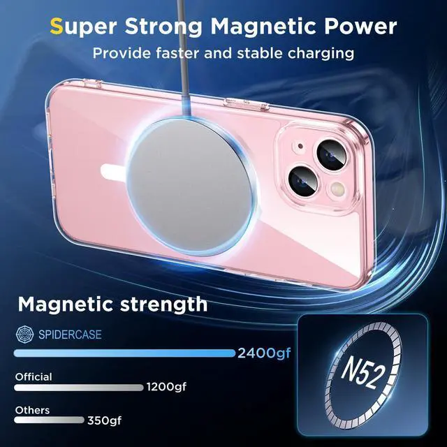 [Strongest Magnetic] SPIDERCASE magnetic for iPhone 15 pro case selected advanced N52SH neodymium magnets. The attraction is enhanced up to 15N. It easily and firmly attach to all kinds of magnetic accessories like wireless charger, wallet, battery pack, wireless car charger etc.