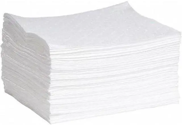 Product Type Sorbent Pad, Fluids Absorbed Oils, For Use With Chemical or Metal Type Oil, Size 15 in x 19 in, Volume Absorbed Per Pad 46 1/16 oz, Volume Absorbed per Pkg. 20 gal, Color/Pattern White, Material Polypropylene, Number of Layers 3, Perforated Perforated, Perforated Size 7 1/2 in x 19 in, Package Quantity 100. This item has been restricted from sale in the following state (s): []