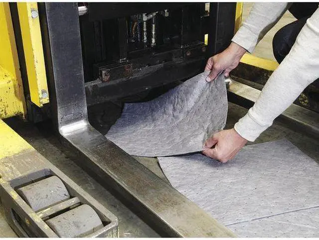 Product Type Sorbent Pad, Fluids Absorbed Universal, For Use With Chemical or Metal Type Universal, Size 15 in x 19 in, Volume Absorbed Per Pad 46 1/16 oz, Volume Absorbed per Pkg. 29 gal, Color/Pattern Gray, Material Polypropylene, Number of Layers 3, Perforated Perforated, Perforated Size 7 1/2 in x 19 in, Package Quantity 100. This item has been restricted from sale in the following state (s): []