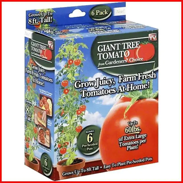Spring River Nurseries - Tomatoes come in pre-seeded professional nursery man starter pots! Grow juicy farm-fresh tomatoes at home! Grow bushels of tomatoes the size of grapefruits! Grows up to 8 feet tall. Each plant yields up to 60 lbs of extra large tomatoes. Easy to plant professional nurseryman's pre-seeded biodegradable pots. The Giant Tree Tomato from Gardeners Choice it zooms to an amazing 8 feet or even taller in just 90 days. Your Tree Tomato will be loaded down with more tomatoes in just one week than most plants produce in an entire season.