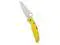 Although the Salt 1 earned an extremely devoted following, since it was based on the third-generation Delica, it lacked some of the design improvements that make the Delica 4 even better. So, consistent with Spydercos obsession with Constant Quality Improvement (C.Q.I.), they revamped the design to create the Spyderco Pacific Salt 2 Folding Knife in Yellow. It combines all the salient features of the Delica 4 Lightweight model with the corrosion-resistant advantages of H-1 PlainEdge steel. The Pacific Salt 2 includes a high-traction Bi-Directional Texture pattern, enhanced handle ergonomics, and a versatile four-position pocket clip. In addition to these features, this knife integrates an 3.78-inch H-1 blade with a linerless handle and hollow grind. This knife was born to perform in and around the water. Like the Endura 4, the Pacific Salt 2 comes with a fabricated Fiberglass Reinforced Nylon handle. This allows the knife to be lightweight and high-strength. To provide a non-slip grip, this knife is molded with Spydercos patented pattern, Bi-Directional Texturing. This texture pattern consists of opposing graduated steps radiating outward from the center of the handle.
