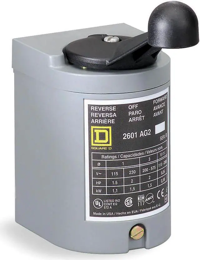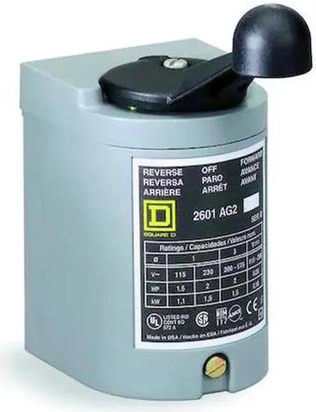 Drum Switch, Switch Action Maintained, Momentary, Phase Single, Reversing Capability Reversing, Horsepower @ Three Phase - 240V AC 2 hp, Horsepower @ Three Phase - 480V AC 2 hp, Maximum Voltage Rating 250V DC, 600V AC, Terminal Connection Type Screw Clamp Terminals, Horsepower @ Single Phase - 120V AC 1 1/2 hp, NEMA Enclosure Rating 4, Number of Poles 3, Horsepower @ Single Phase - 240V AC 2 hp, Standards CSA Cetrified, UL Listed, Overall Width 4.4 in, Overall Depth 5.5 in.