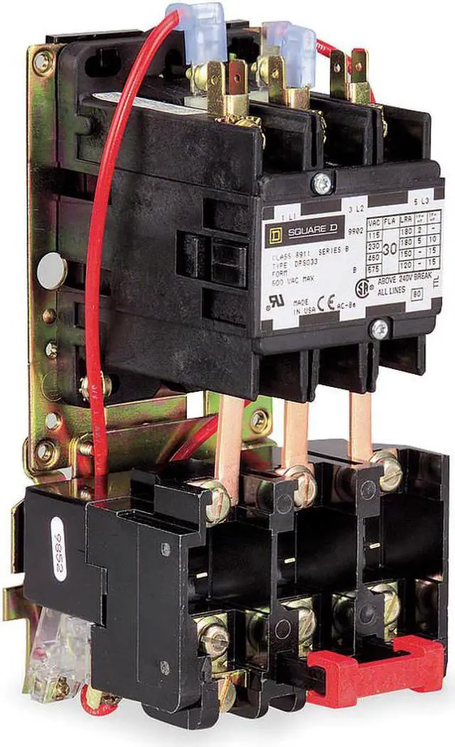 Definite Purpose Magnetic Motor Starter, Series Class 8911 Type DP, Coil Voltage 208-240V AC, Horsepower @ Three Phase - 600V AC 30 hp, Maximum Voltage Rating 600V AC, Horsepower @ Three Phase - 480V AC 20 hp, Horsepower @ Three Phase - 240V AC 15 hp, Horsepower @ Single Phase - 240V AC 10 hp, Horsepower @ Single Phase - 120V AC 3 hp, Current AC 50 A, Number of Poles 3, NEMA Enclosure Rating No Enclosure, Reversing Capability Non-Reversing, Phase Three, Overload Protection Type Melting Alloy.