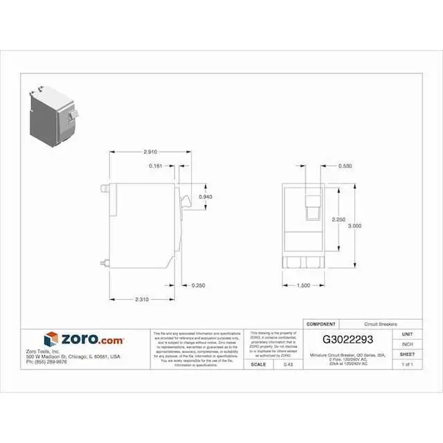 Miniature Circuit Breaker, Amps 20 A, AC Voltage Rating 120/240V AC, Circuit Breaker Type High Interrupting Capacity, Number of Poles 2, DC Voltage Rating 48V DC, Circuit Breaker Actuator Paddle, Circuit Breaker Mounting Style Plug In, Compatible Panelboard/Load Center Series QO, Phase Single, Series QO, Max. AIR Rating 22kA at 120/240V AC, For Use With QO Load Centers and NQ Panelboards, Terminal Connection Pressure plate, Frame Size 100A/QO, Length 3 in, Width 1.5 in, Depth 2.91 in. This item has been restricted from sale in the following state (s): []
