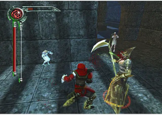 | Feature | Kain is back to reclaim the high throne of bloodlust and brutality. Cast down from power by a mysterious warlord centuries ago, Kain reawakens in a world he barely recognises. His armies slain, his vampire brethren nearly extinct, Kain is one of the last of his kind. With an agenda of vengeance, Kain shall unleash a wicked wrath to uncover the plot that threatens the land he seeks to conquer. - Execute fierce attacks and brutal combos with battle-axes, swords and other heavy metal weaponry. - When weapon edges dull on bone and steel, turn to your Dark Gifts such as beserk and stealth to exact your lethal will. - In pursuit of power or just for the thrill of the kill, Kain's lust for blood is inspiring. - Lead Kain through highly detailed environments of gothic nightmare; host to thieves, knights and demons of all sorts. |
