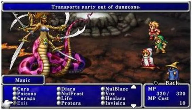 | Features | Originally released in 1987 in Japan, FINAL FANTASY was hailed by gamers and critics alike as one of the first RPGs to create a fantasy world that captured the imagination of players around the globe. Twenty years later, the illustrious FINAL FANTASY franchise comes full circle: remastered as two separate titles exclusively for the PSP system, FINAL FANTASY and FINAL FANTASY II are timeless classics that created the blueprints for the future of RPGs. These all-new 20th Anniversary editions are treated with crisp, updated graphics, an unforgettable enhanced soundtrack and a vibrant widescreen presentation.