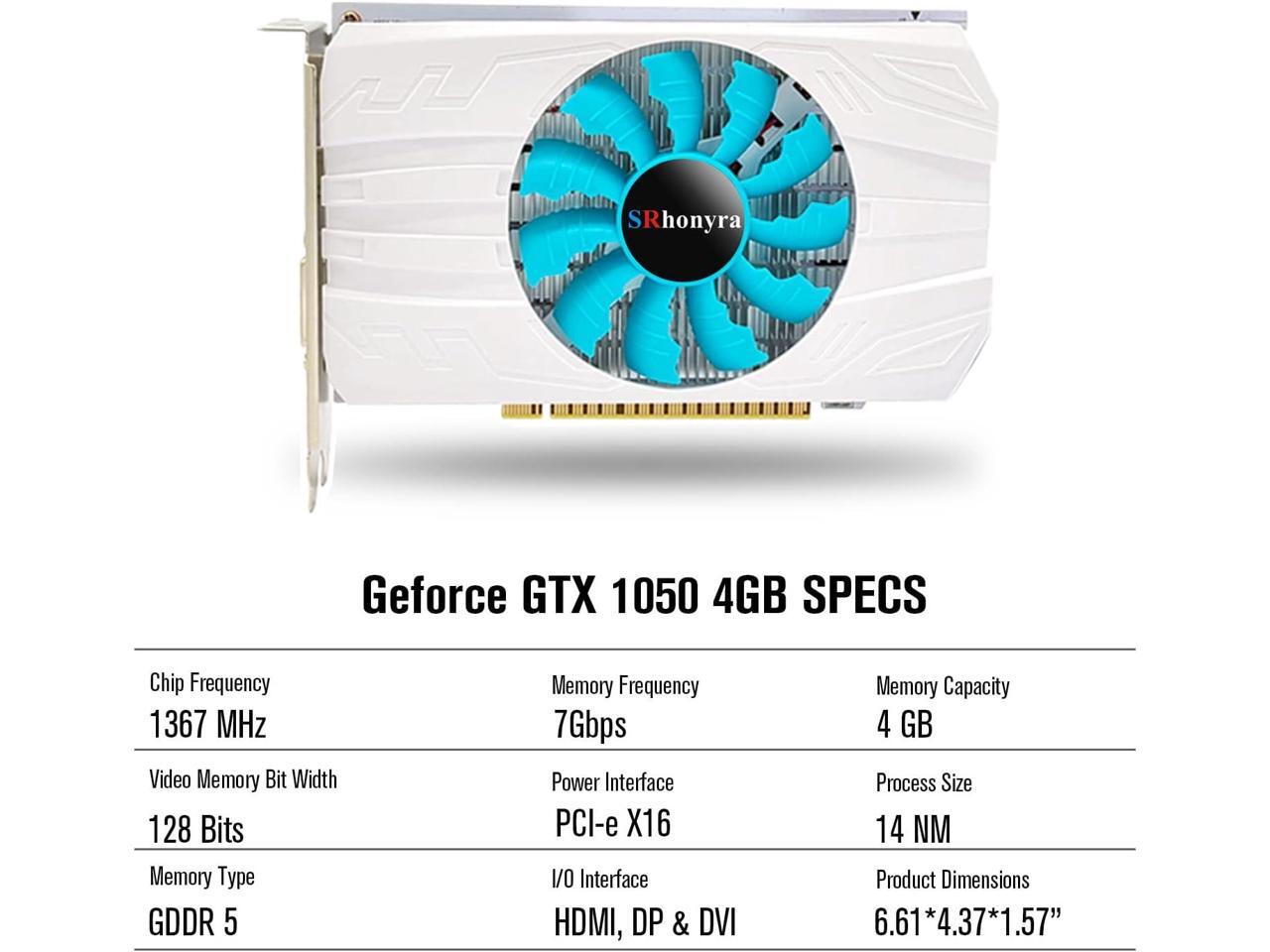 SRhonyra GTX 1050 4GB Graphics Card GDDR5 128 Bit PCIe 3.0 x16 Bus Powered DP+HDMI+DVI Ports Gaming Video Card Dual Width GPU for Tower PC Case