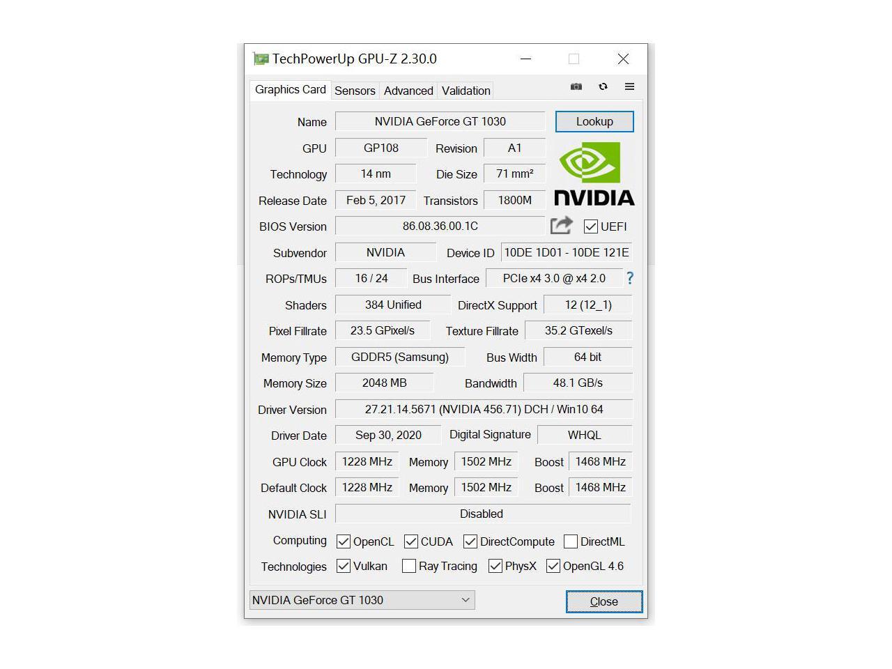 - 1.gt 1030 low profile video card , powered by Geforce GT 1030 GPU, 2GB GDDR5 128bit video memory.