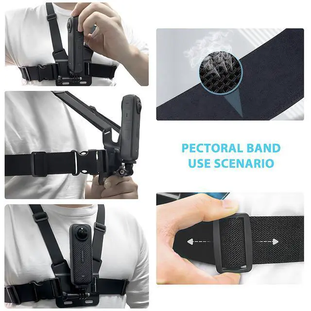 Adjustable Chest Mount Harness for Insta360 X5 X4 X3 X2 X ACE Pro ONE RS R GO 2 3, Chest Strap Body Mount Accessories Compatible with Gopro Hero Series and DJI Osmo Action 5 Pro Cameras Attachments