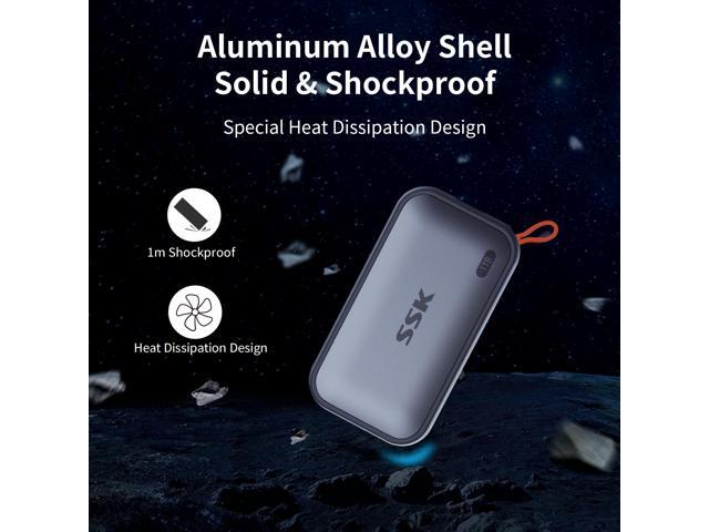 - Portable Design: SSK Mini portable SSD is made of 2mm thick aluminum alloy material,the surrounding area is made of engineering-grade ABS, which has good toughness. Size: 2.70" x 1.48" x 0.49" and weight 0.18lb, you can easily put this Portable SSD in your briefcase, backpack or the carrying bag;