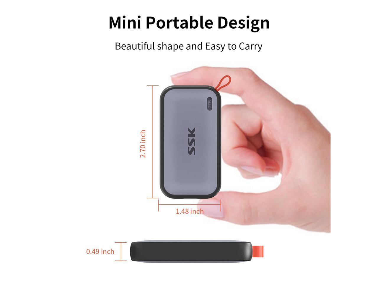 - Portable Design: SSK Mini portable SSD is made of 2mm thick aluminum alloy material,the surrounding area is made of engineering-grade ABS, which has good toughness. Size: 2.70" x 1.48" x 0.49" and weight 0.18lb, you can easily put this Portable SSD in your briefcase, backpack or the carrying bag;