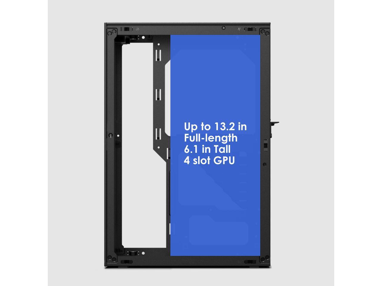 - PCI 4.0 riser card included for a stylish vertical mount full length GPU up to 332mm long on 3 slots mode and up to 336mm long on 4 slots mode.