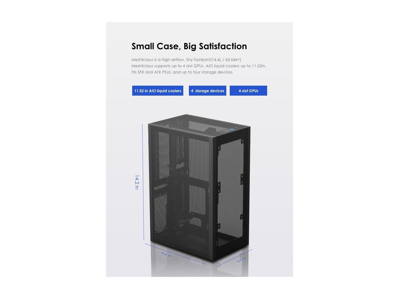 - Compact 14.67 liter volume allows full-size GPU, ATX PSU, and 280 AIO cooler compatibility.