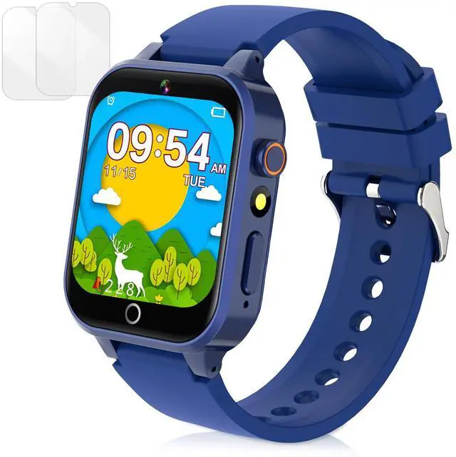 Kids Smart Watch with Camera, Video, Music Player, Alarm Clock, Stopwatch, Calendar, Pedometer, 1.54'' HD Touchscreen, Shockproof, IP68 Waterproof for Girls Boys 6-12 Years Old (Blue)
