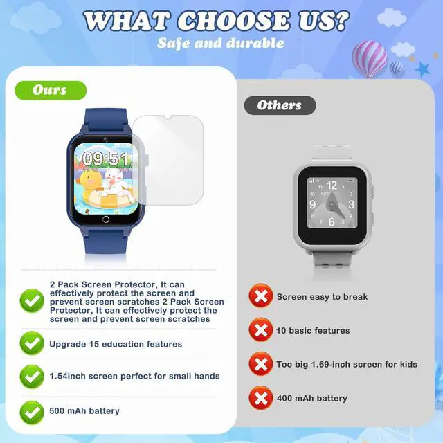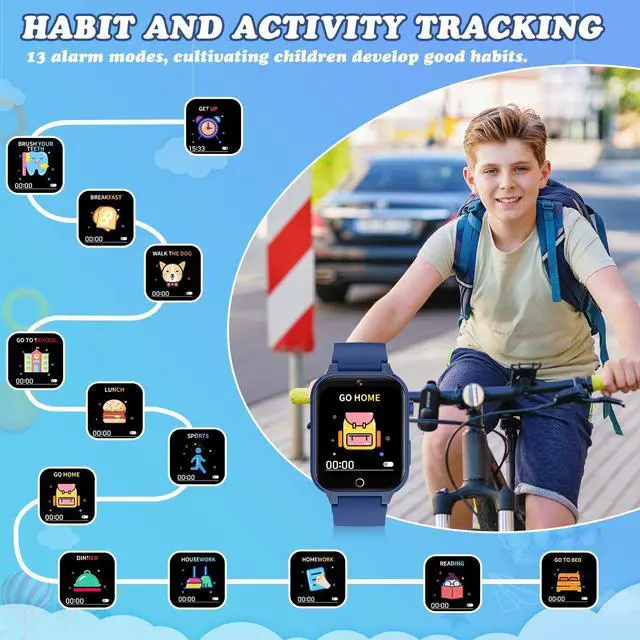 Upgrade Kids Watch: Our upgraded kids' smartwatch offers 26 fun and educational games, suitable for children of multiple ages. These games enhance logical thinking, reaction time, and hand-eye coordination. Unique features like habit tracking and parental controls set this watch apart, making it an excellent gift for boys and girls aged 4-12.
