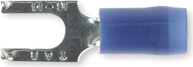 Fork Terminal, Contact Finish Tin, Contact Material Copper, Insulation Color Blue, Insulation Coverage Partial Coverage, Insulation Material Nylon, Maximum Operating Temperature 221 Degrees F, Maximum Voltage 600 V, Maximum Wire Size 14 AWG, Stud Size #10, Termination Style Crimp, Tongue Length 0.42 in, RoHS Compliant No, Seam Style Brazed, Standards CSA Certified, UL Listed, Barrel Length 0.42 in, Barrel Style Insulation Grip, Compatible Grainger Part Number 3KH46, 3KH52, 4XMR5. This item has been restricted from sale in the following state (s): []