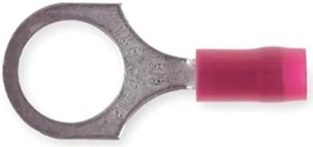 Ring Terminal, Insulation Color Red, Insulation Coverage Partial Coverage, Insulation Material Nylon, Maximum Operating Temperature 221 Degrees F, Maximum Voltage 600 V, Minimum Wire Size 22 AWG, Maximum Wire Size 16 AWG, Termination Style Crimp, Tongue Width 0.53 in, Contact Finish Tin, Contact Material Copper, Standards CSA Certified, UL Listed E9809, Barrel Length 0.52 in, Barrel Style Serrated Barrel, Compatible with Product Type Copper Conductors, Hole Spacing 0.35 in. This item has been restricted from sale in the following state (s): []