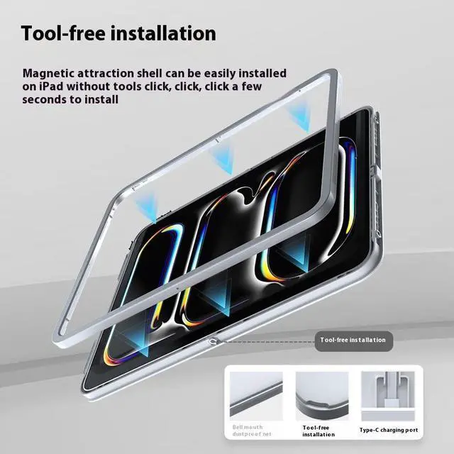 The charging case is specially designed for iPad Pro 11-inch (M4), easy to assemble and get full access to all features. This case with built-in circuit board and magnets to make your iPad enable to mount and charge by the magnetic wall mount.