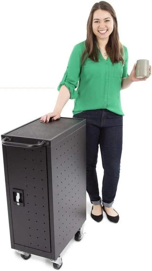 • Easy Transportation - With its four non-marking wheels and ergonomic handle, this rolling charging cart is easy to move from classroom to classroom or between offices.
