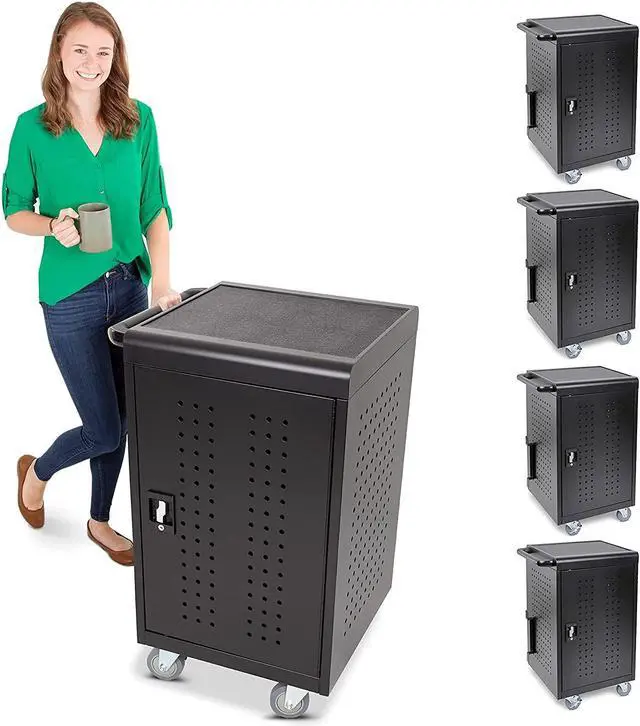 | Features We Love: Convenient 4-Pack of Carts, 30 Device Charging, UL Safety Certified, Ventilated Locking Cabinet, Durable Steel Frame, Full-Swivel, Lockable Wheels, Built-in