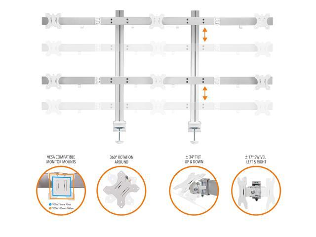 - Versatile VESA Mounts - Experience full motion articulation with detachable VESA compatible mounts that offer 360 spin, 17 swivel, and 34 tilt, adjusting to your ideal ergonomic height.
