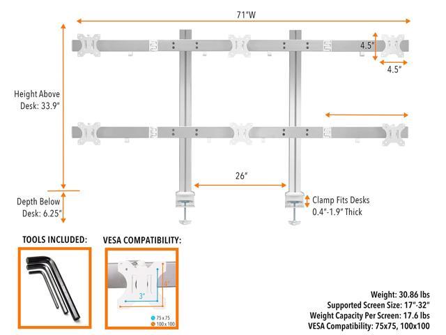 - Universal Monitor Fit - This robust 6 monitor stand accommodates screens from 17 to 32 inches, supporting up to 17.6 pounds each, with a sturdy metal base ensuring secure placement.