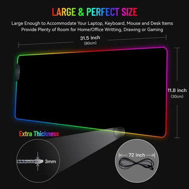 Premium RGB LED Large MousePad, Durable, Non-Slip, and Wide Surface for Office and Gaming