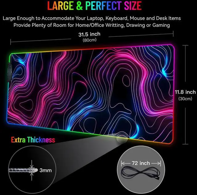 Premium RGB LED Large MousePad, Durable, Non-Slip, and Wide Surface for Office and Gaming