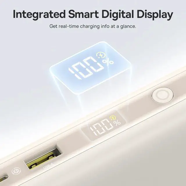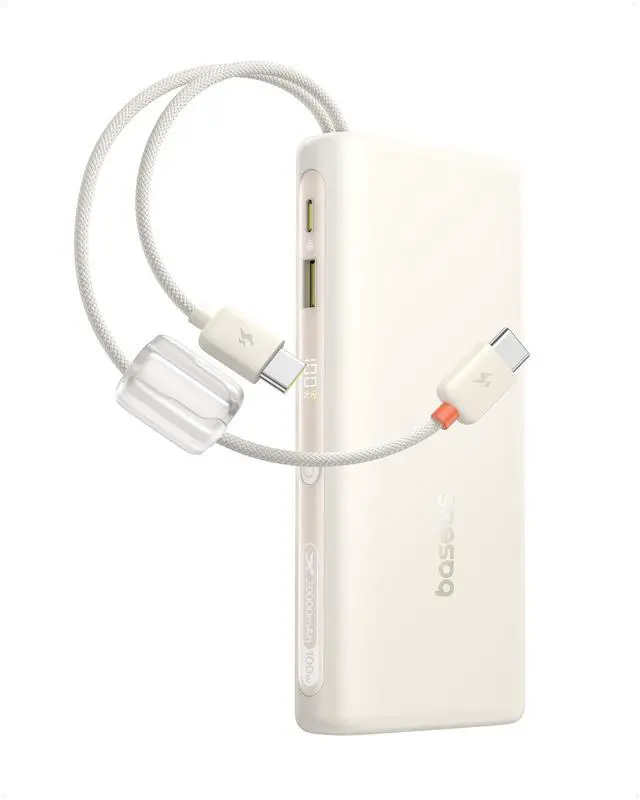 JAYSUING EnerFill FC41 Digital Display Power Bank with Dual Built-in USB-C Cables 20000mAh 100W Starlight Off-White