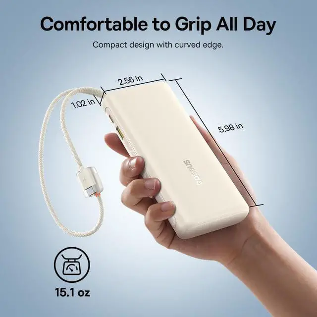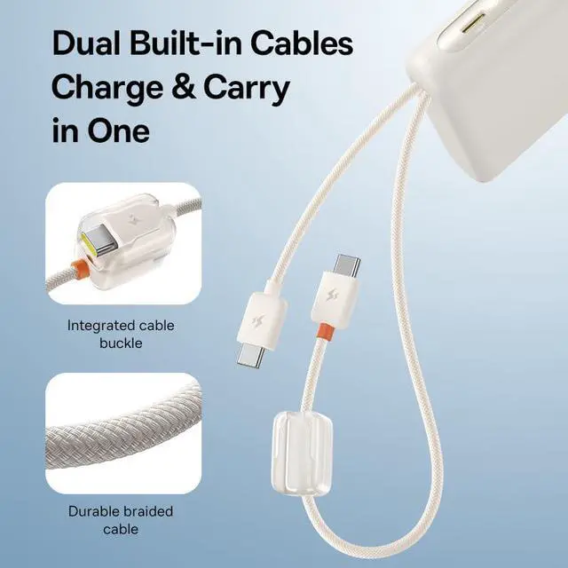 Meet the power bank that does it all. With blazing-fast 100W charging, built-in cables, and universal compatibility, it's designed to keep all your devices powered up anywhere, effortlessly.
