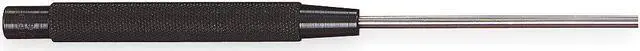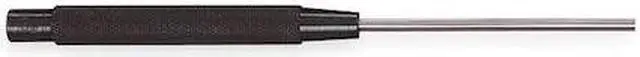 Drive Pin Punch, Automatic No, Punch Type Drive Pin Punch, Tip Size 3/16 in, Tip Type Flat, Shank Shape Round, Grip Style Knurled, Hole Diameter 3/16 in, Overall Length 8 in, Container Type Box, Material Applications Metal, Plastic, Wood, Includes Striking Cap No, Measurement Type SAE, Includes Handguard No, Tether Ready No, Includes Handle No, Features Designed to Withstand Hard Use, Diameter of Punches is Slightly Less Than Listed, Punch Diameter Clearly Marked on the Head, Heat-Treated Yes.