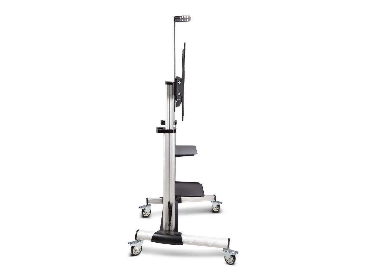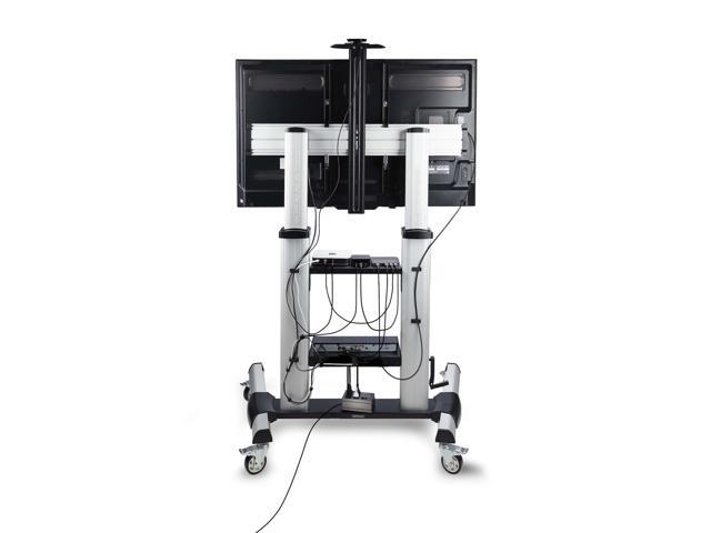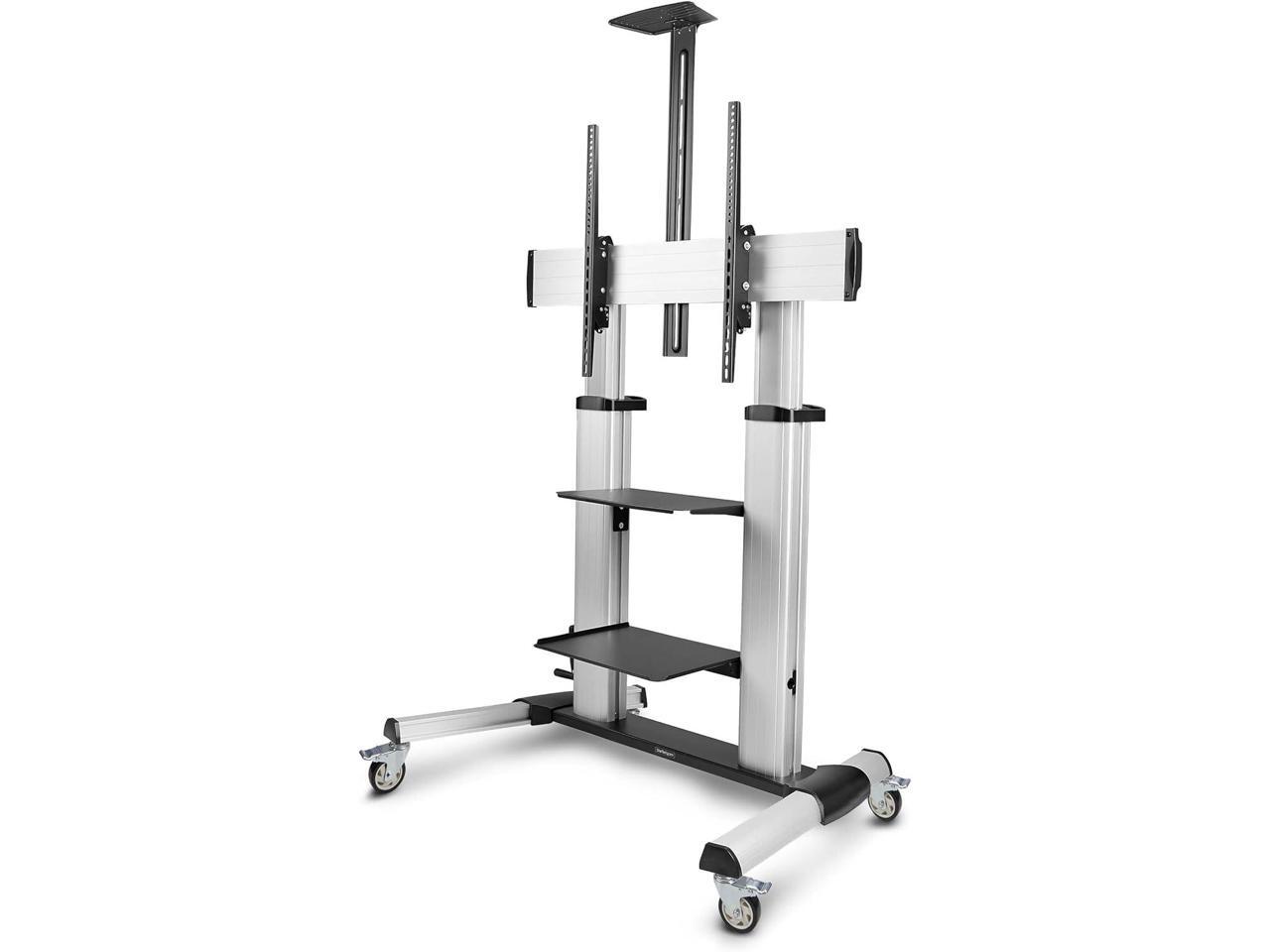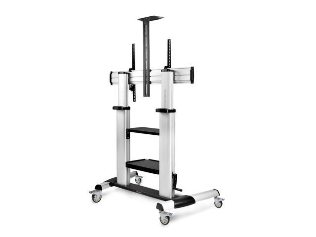 - VESA-compatible, heavy-duty mobile TV stand/trolley supports flat-screen TVs from 60-100in and up to 220lbs