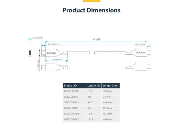 StarTech 15ft (4.5m) USB-C Charging Cable, Charge & Sync, 60W (3A) PD, USB 2.0 Laptop Charger Cable, TPE Jacket - Black USB C Charging Cord Model USB2CC15FBKE